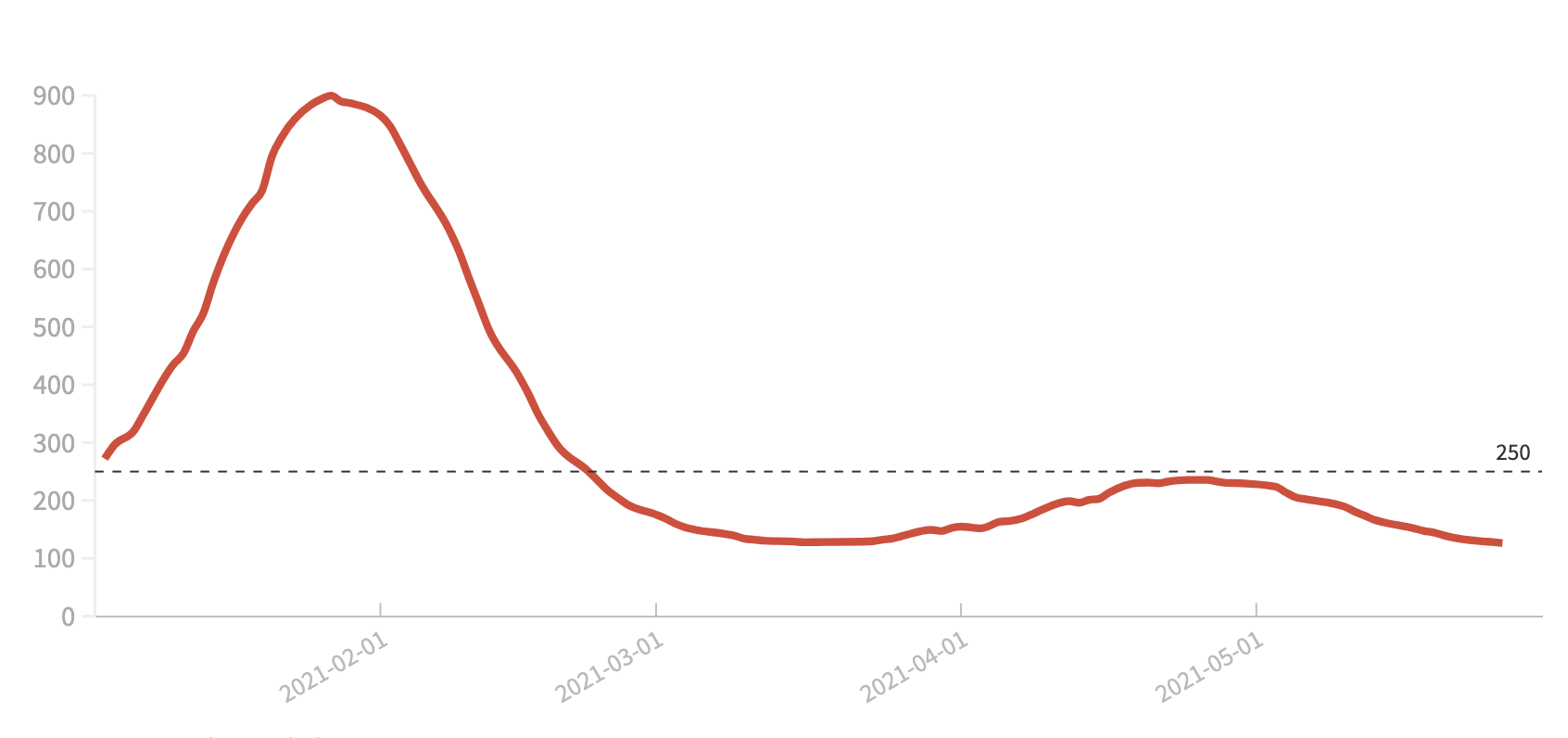 El 64% de todos los fallecidos confirmados por COVID-19 desde el inicio de la pandemia tenía 80 años o más. Desde la tercera semana de 2021, momento en el que comenzó la vacunación de la segunda dosis de la vacuna en residencias de mayores y centros sociosanitarios, el porcentaje de fallecidos semanales de más de 80 años con respecto al total de fallecidos ha ido bajando desde finales de febrero de 2021. En este gráfico puedes observar su evolución.