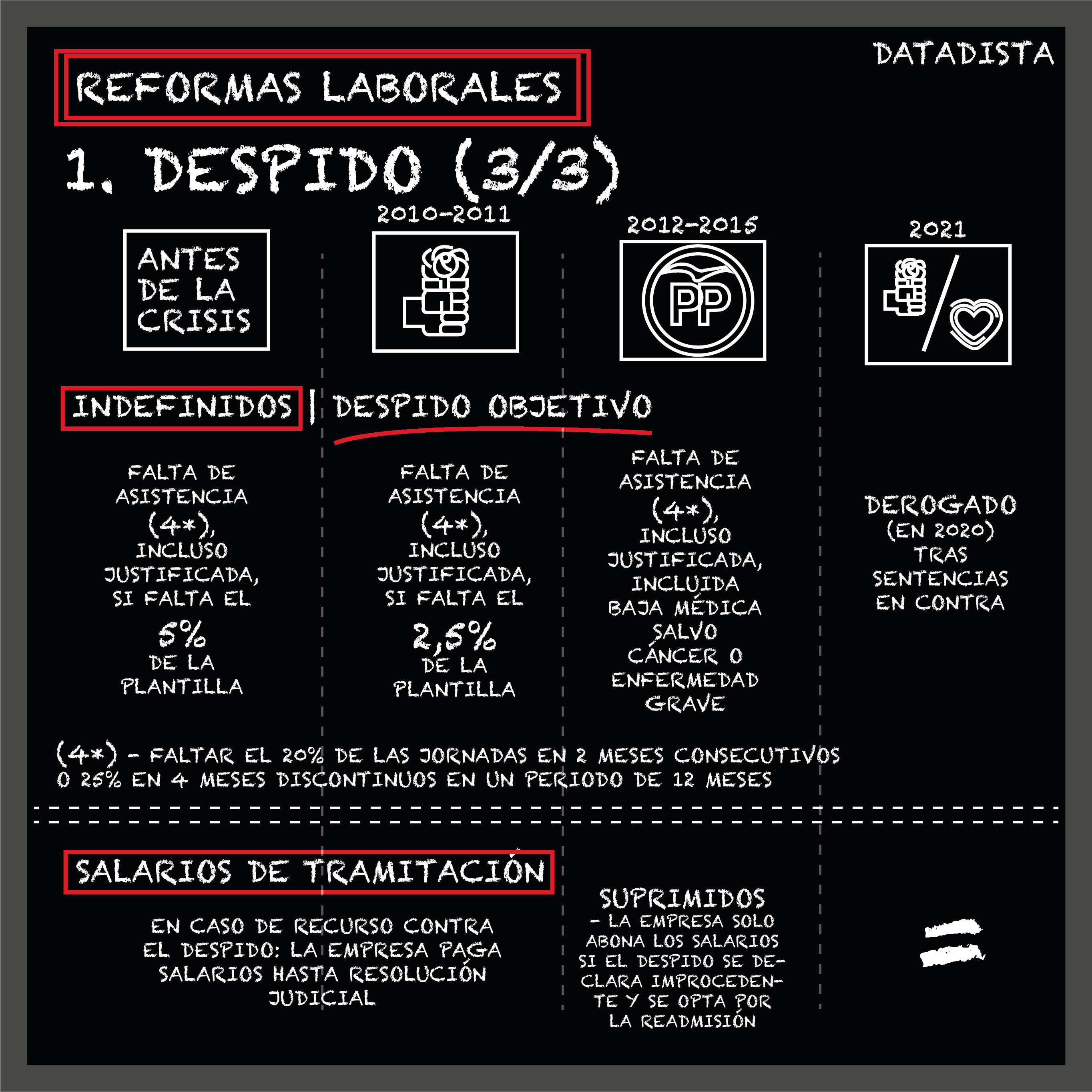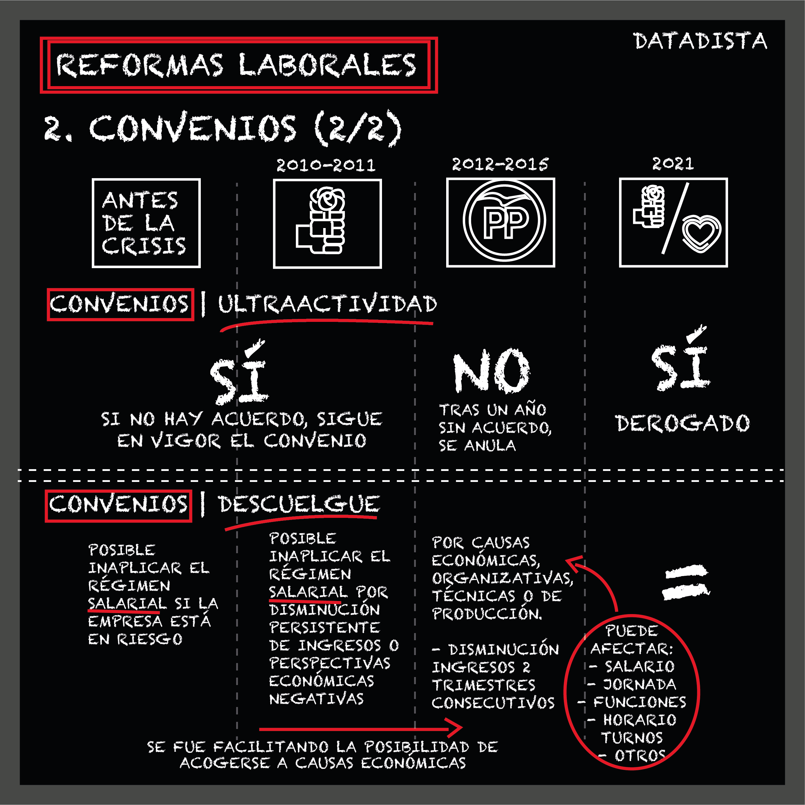 ¿Qué ha cambiado? ¿Qué no? ¿Qué partes de la reforma laboral del PP de 2012 han quedado derogadas? ¿Qué partes de la normativa fueron introducidas por aquella reforma de 2012 y cuáles por las reformas del PSOE de José Luis Rodríguez Zapatero tras el estallido de la crisis de deuda en 2010? Aquí puedes consultarlo de forma esquemática.
