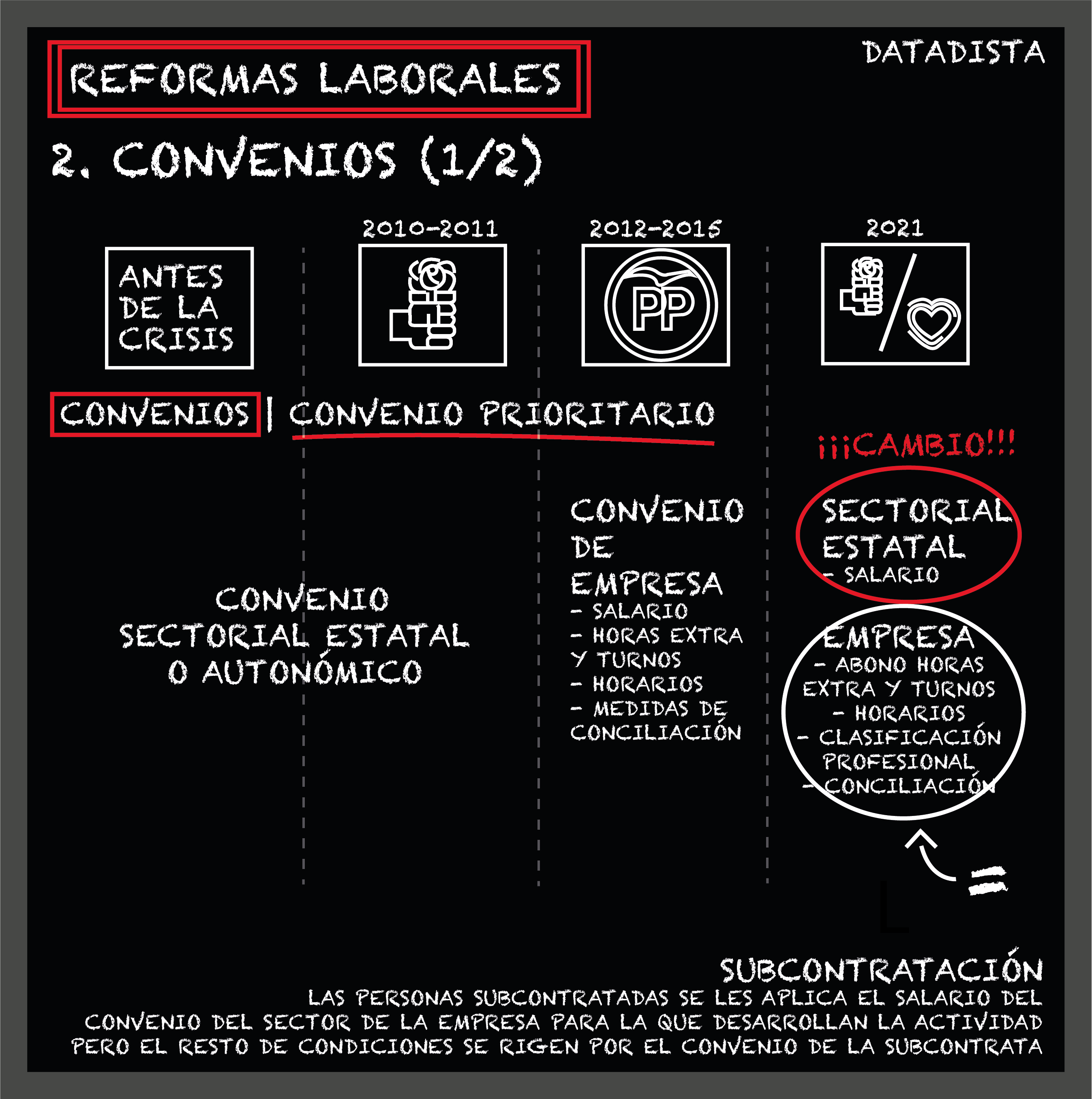 Ambos puntos también afectan a la subcontratación, porque ahora se aplica a los trabajadores subcontratados el convenio sectorial al que pertenezca la empresa de la actividad principal pero solo en materia salarial, no en el resto de puntos. Al prevalecer el convenio de empresa en el resto, si la empresa multiservicio tiene convenio propio, es el que se aplica.