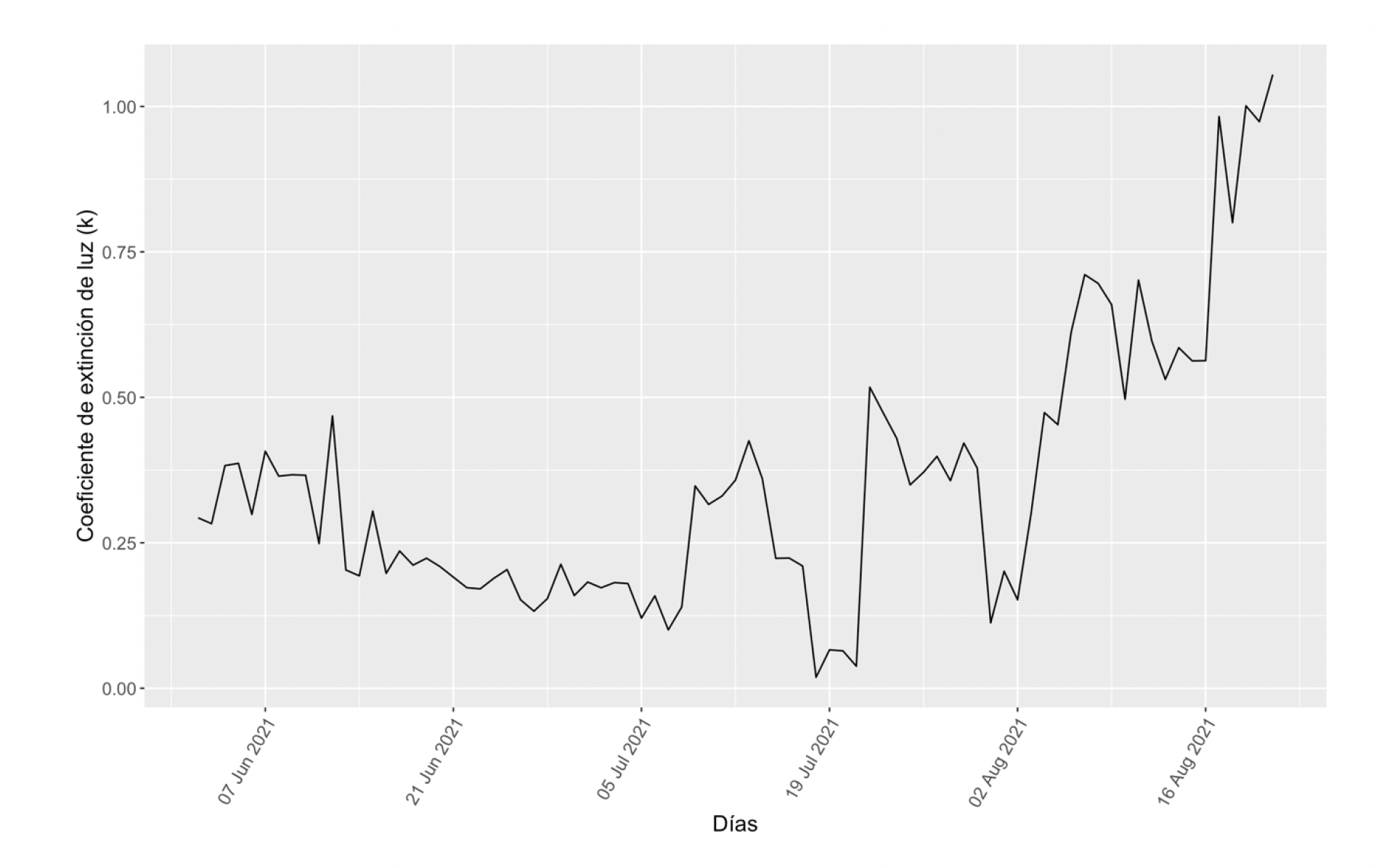 El pasado 31 de mayo, el Instituto Español de Oceanografía (IEO) sumergió, en la zona central de la laguna del Mar Menor, un sensor a 5 metros de profundidad para medir la disponibilidad de luz en la columna de agua. Lo recuperó el 24 de agosto. Para entonces, los peces y crustáceos muertos, tras el nuevo episodio de falta de oxígeno (anoxia), se contaban ya por toneladas en las orillas. Al comprobar los datos recogidos por el aparato, algo que solo fue posible al sacarlo del agua y analizar sus registros, vieron "claramente cómo, a partir de principios del mes de junio, los valores máximos diarios" de la irradiancia submarina PAR (radiación fotosintética activa) "experimentan una reducción paulatina y constante hasta alcanzar valores muy próximos a cero (casi oscuridad) a principios de agosto y manteniéndose así durante todo el mes". El punto de inflexión de la extinción de la luz "se produce a partir del 19 de julio".