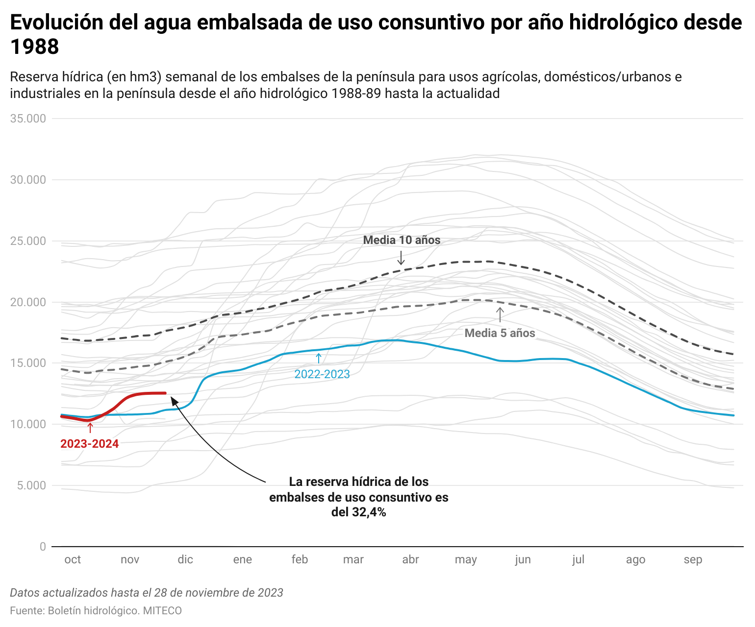 Los embalses para consumo humano y agricultura están al 32,4%