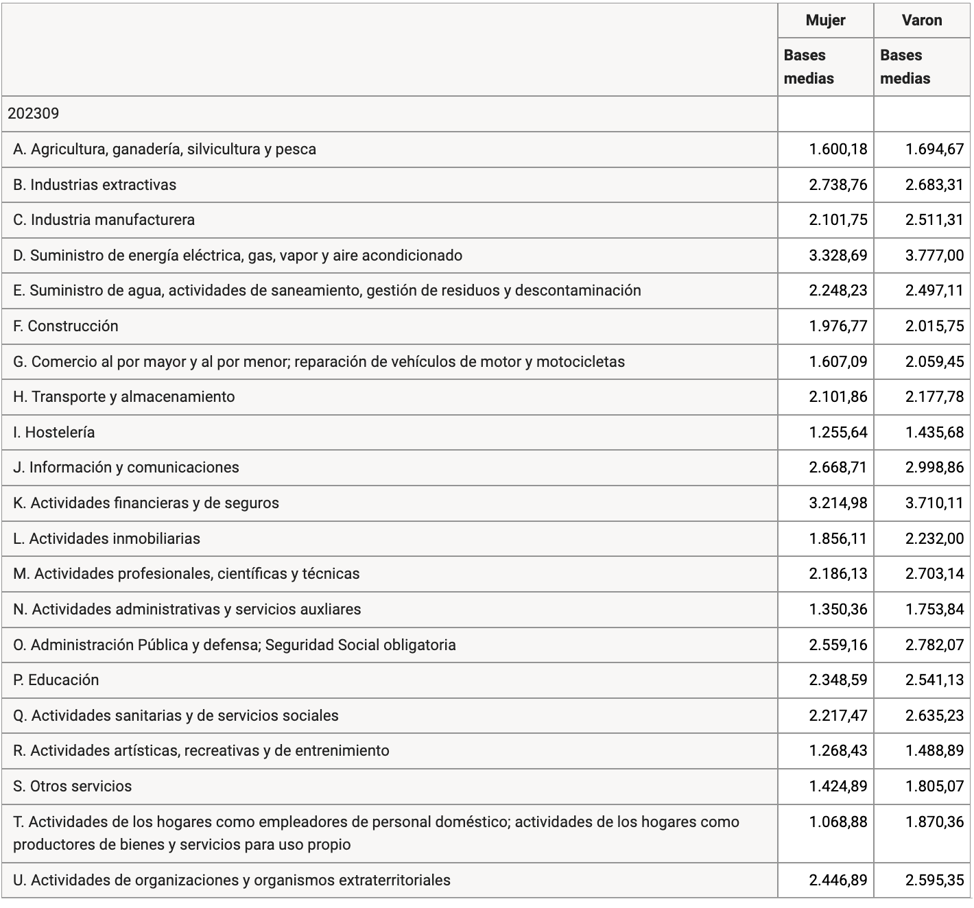 Teniendo en cuenta todos estos condicionantes, sumados al hecho de que a igual ocupación y tipo de contrato persiste la brecha de género entre hombres y mujeres, no es de extrañar que prácticamente en todas las ramas de actividad la base de cotización media de unos y otras suela ser mejor en el caso de los hombres.