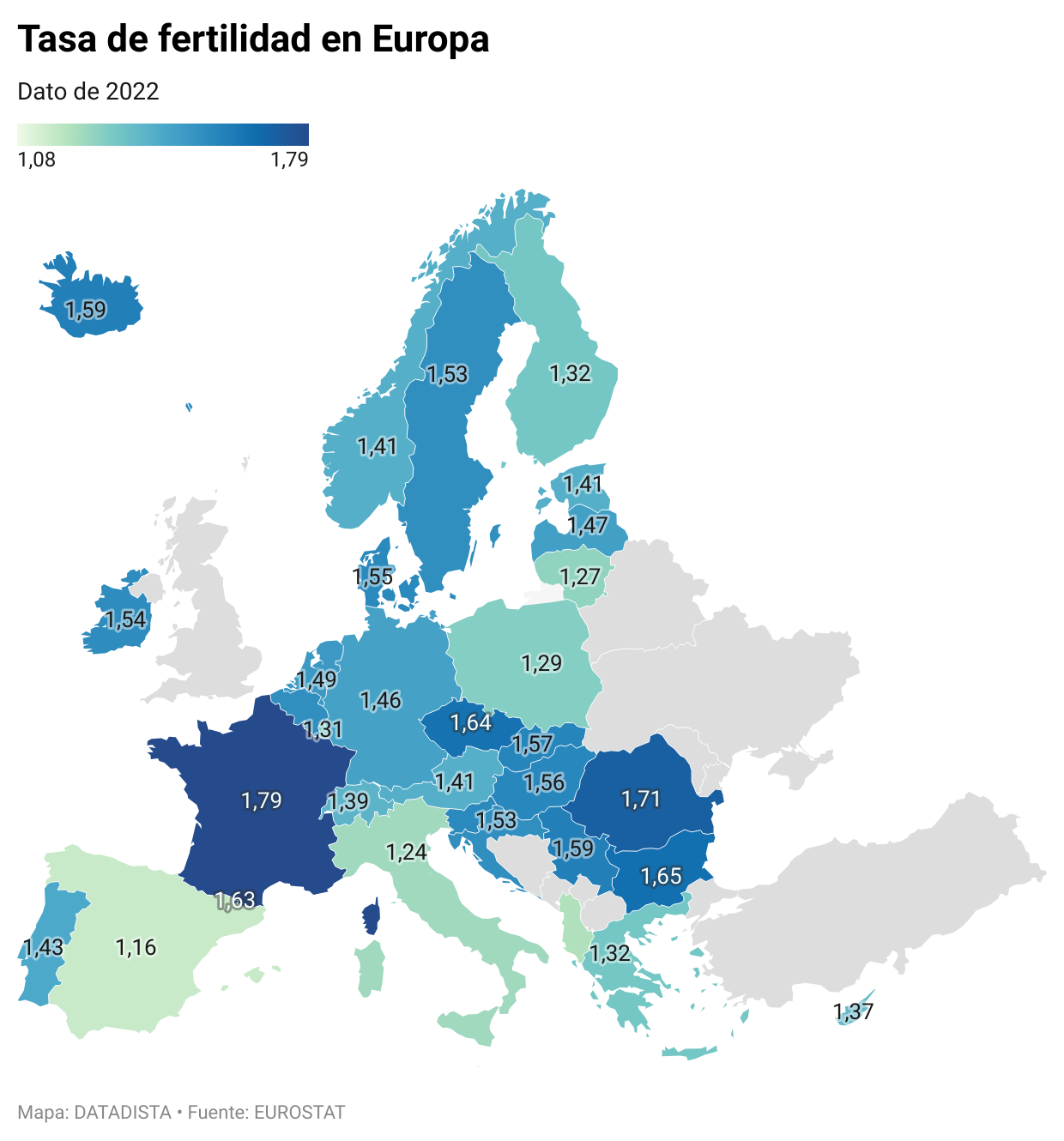 Con este panorama, todavía habrá quien se sorprenda de las tasas de fertilidad que lucimos en España y que mostró esta semana EUROSTAT, una consecuencia del efecto de la suma de las mujeres que no tienen hijos e hijas sencillamente porque no quieren, las que queriendo tener no ven que se den las condiciones para ello y las que retrasan la maternidad para no afectar a los años más determinantes de su carrera laboral.