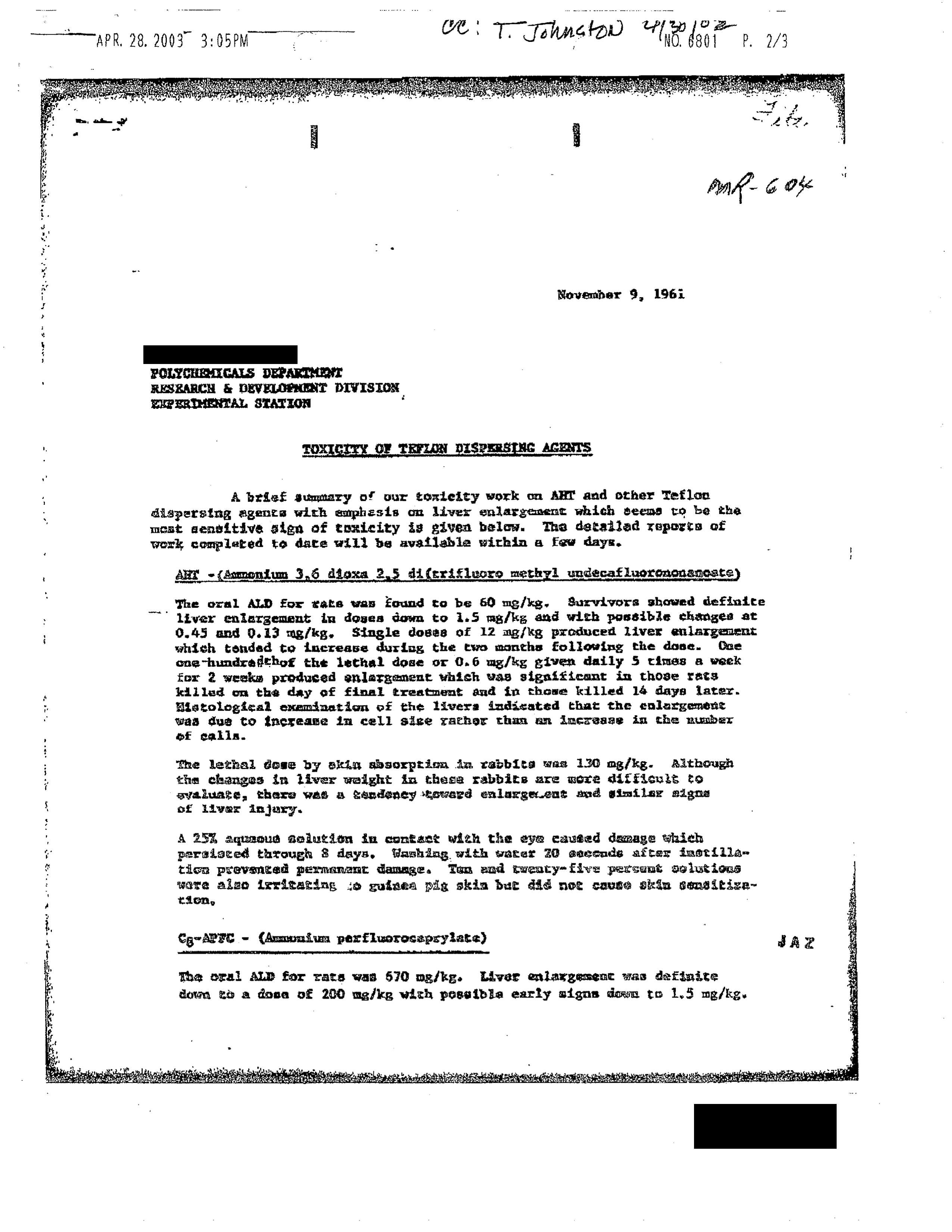 Los experimentos internos que probaban que los PFAS eran tóxicos se remontan a los años 50 del año pasado. En estudios con ratas y conejos ya vieron que provocaba alteraciones en el hígado, un claro síntoma de toxicidad. Algunos estudios, como uno que tuvo lugar con peces en los años sesenta, tuvieron que suspenderse porque el PFAS que se estaba probando en el agua, que se utilizaba para las espumas antiincendios, provocó la muerte de todos entre minutos y semanas dependiendo de la dosis.