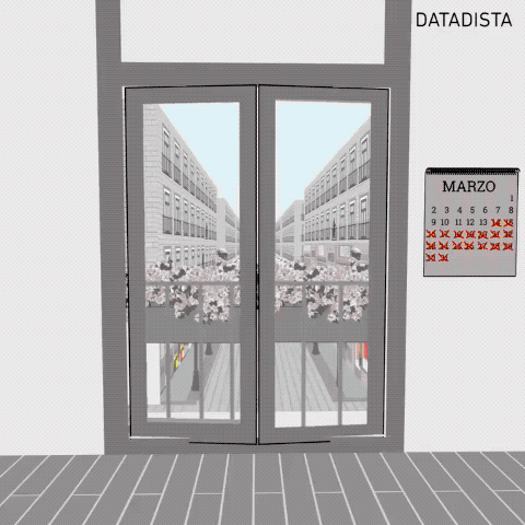 En DATADISTA dejamos todo lo que estábamos haciendo para centrarnos en explicar, con datos, análisis y animaciones, lo que estaba ocurriendo, su evolución y las normas que se iban imponiendo. Mientras algunas de vosotras y vosotros hacíais pan, os daba por dibujar o tocar un instrumento, a alguno de nosotros nos dio por crear una ciudad en 3D para poder pasear virtualmente por las calles que habían quedado tan limitadas. Y, como aquí se aprovecha todo, en DATADISTA la usamos para explicar las restricciones: las recomendaciones sanitarias, muchas de ellas difíciles de cumplir en ciudades densamente pobladas; los horarios y franjas de edad para los paseos durante la desescalada; las reglas del complejo 1-1-1-1 cuando los niños y niñas pudieron salir; los parques precintados; las complejas normas para acceder a las ayudas...