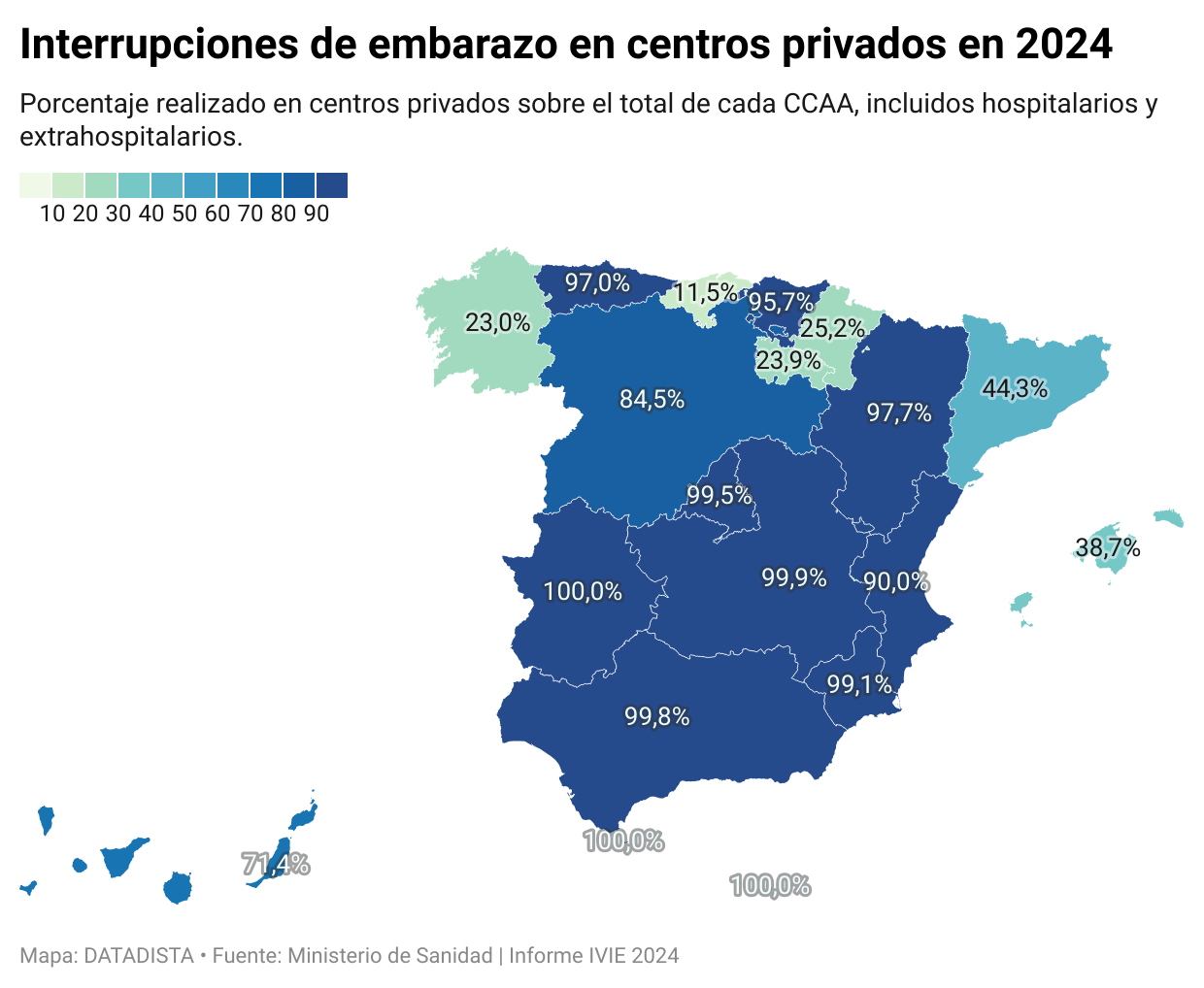 Vayan por delante los datos positivos: Cantabria realizó el 88,5% de las interrupciones en centros públicos el año pasado; Galicia, el 77%; La Rioja, el 76,11% y Navarra (74,83%).