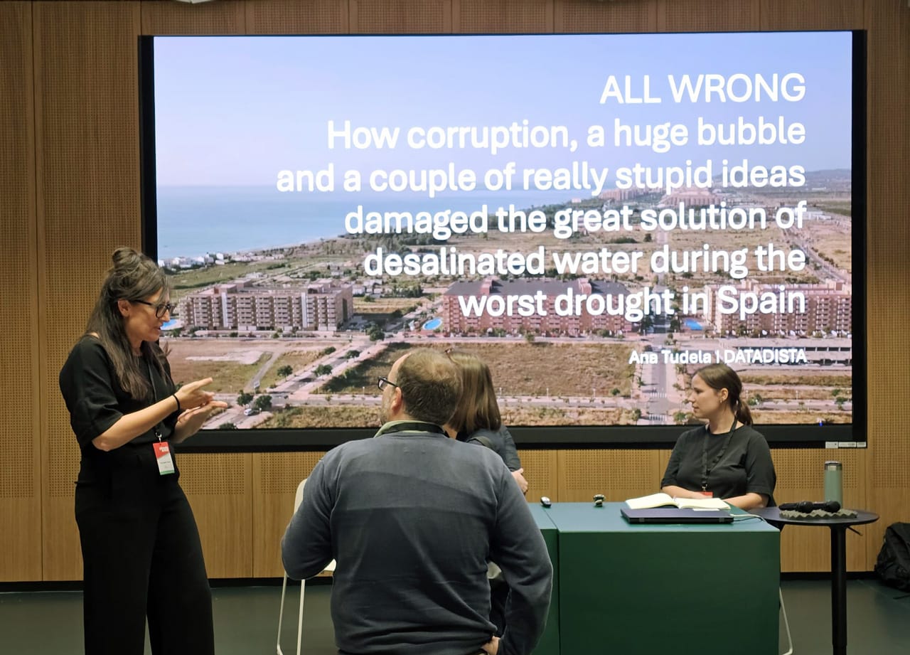 A continuación nos hemos ido a Budapest (Hungría) para participar en Climate Arena, la conferencia europea sobre periodismo climático. Allí presentamos nuestra investigación Desaladoras: viaje a los rotos de la fábrica del agua y explicamos cómo, en plena sequía, algunas grandes plantas desaladoras en España, como las de Castellón, han permanecido casi paradas, mientras los acuíferos costeros se sobreexplotan y se contaminan por nitratos.