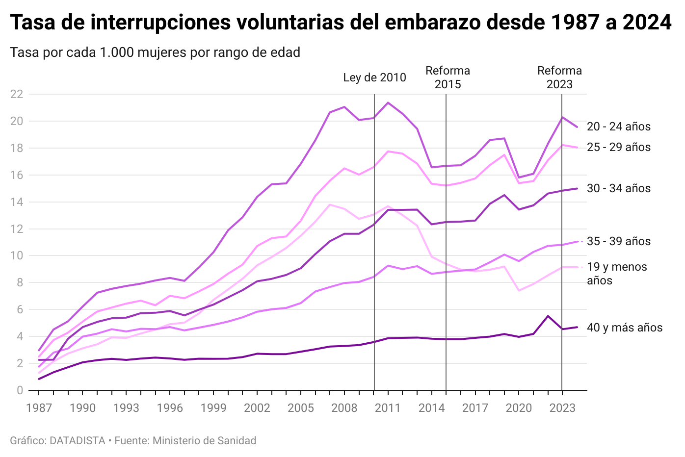 En 2015, el Gobierno de Mariano Rajoy (PP) dio marcha atrás a esto último, recuperando el control parental de las mujeres de 16 y 17 años. En aquella legislatura hubo también un largo amago de volver a la ley de supuestos, liderado por el entonces ministro de Justicia Alberto Ruiz Gallardón, pero el PP no se atrevió a tanto y acabó con la intención de aprobar aquella ley y de paso con la carrera política de Gallardón.