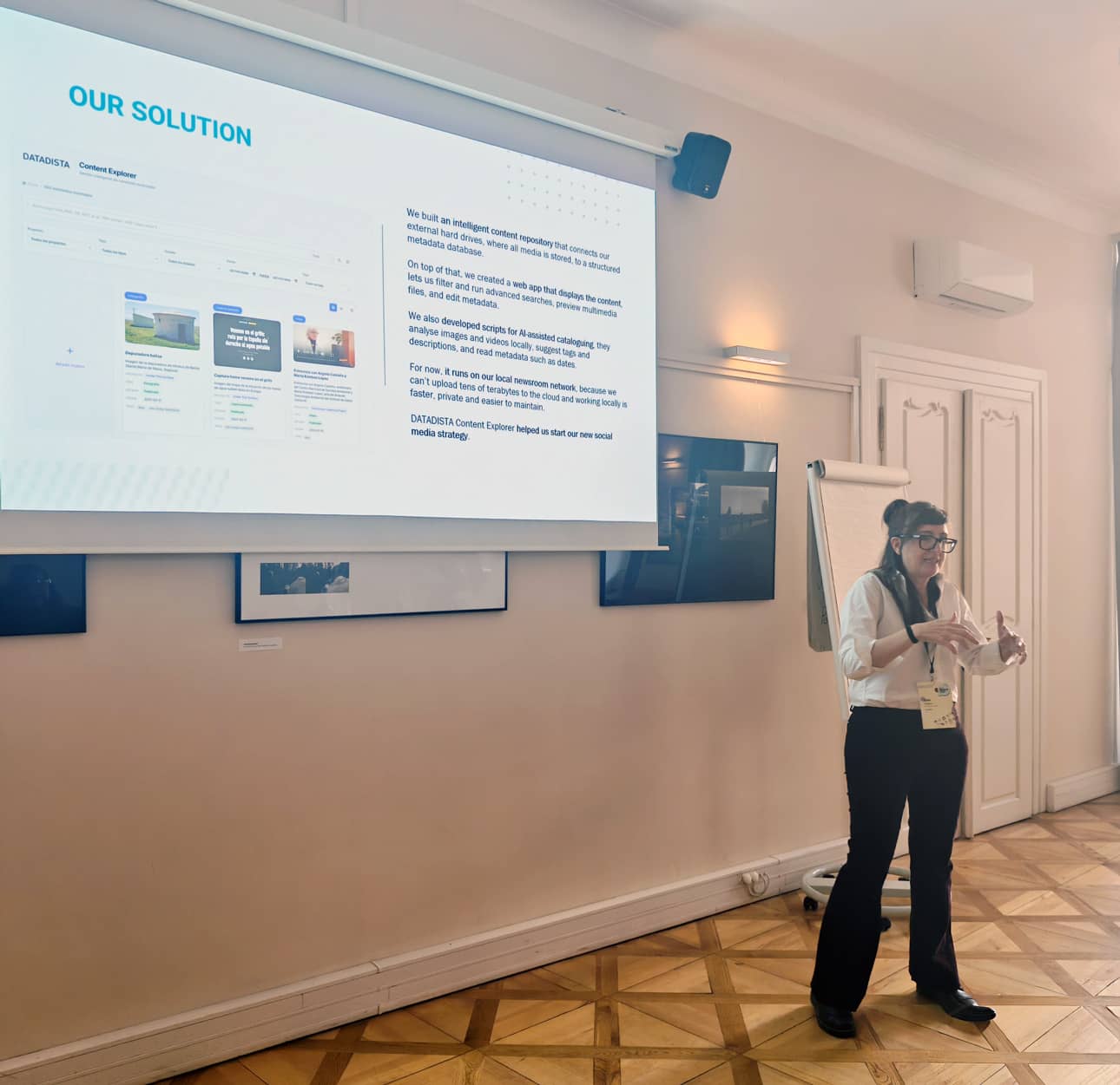 El proyecto que hemos desarrollado y que hemos presentado es una herramienta para gestionar nuestros contenidos multimedia. DATADISTA Content Explorer nos está permitiendo, con la ayuda de la inteligencia artificial, catalogar y gestionar la ingente cantidad de material que acumulamos en todas nuestras investigaciones y reutilizar estos contenidos en otros canales y plataformas, como las redes sociales.