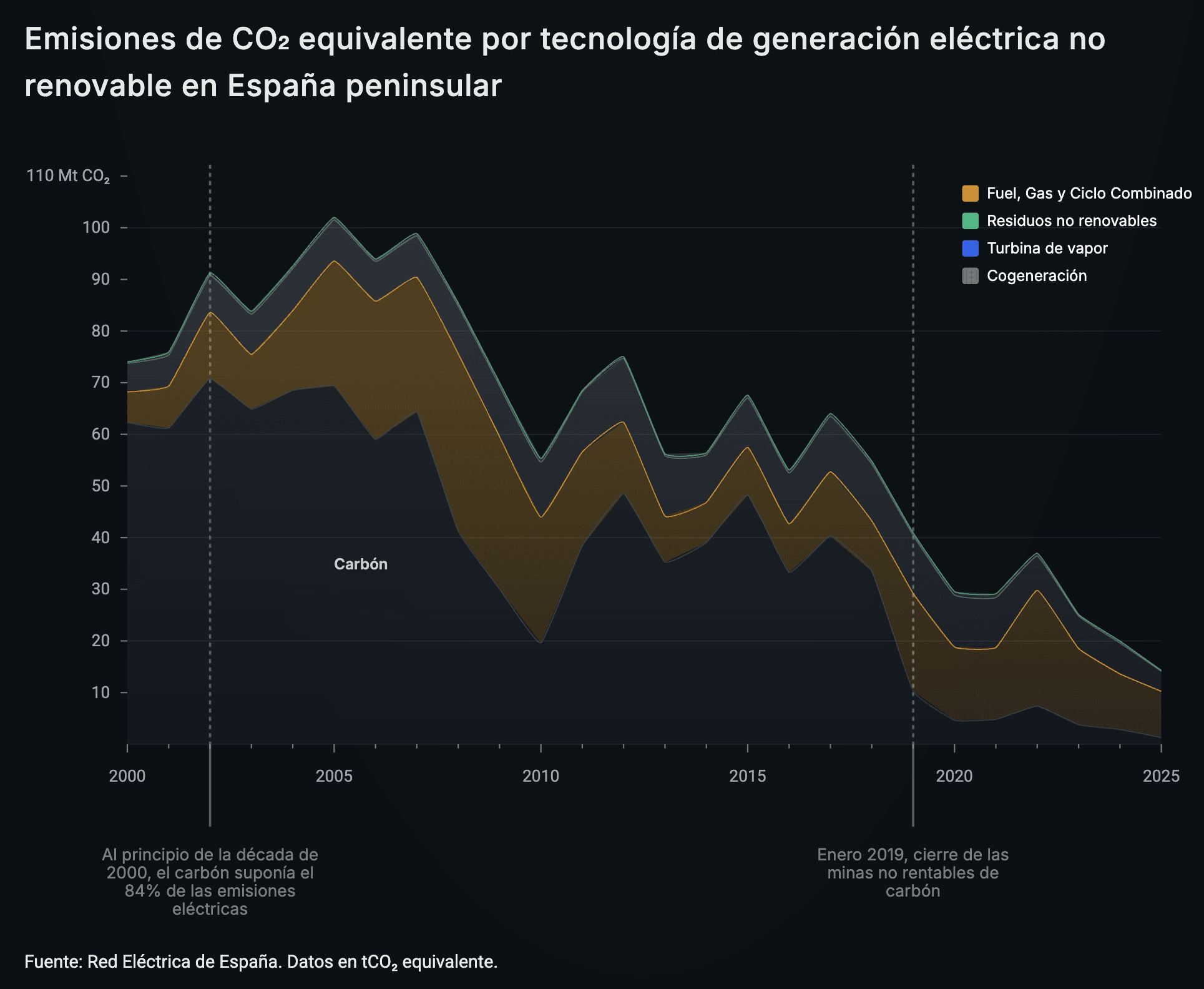 En España, como explicamos en el capítulo 1 de "Adiós al carbón", parte de la reducción de las emisiones a la atmósfera se ha realizado mediante la apuesta por renovables y el cierre de las centrales térmicas.