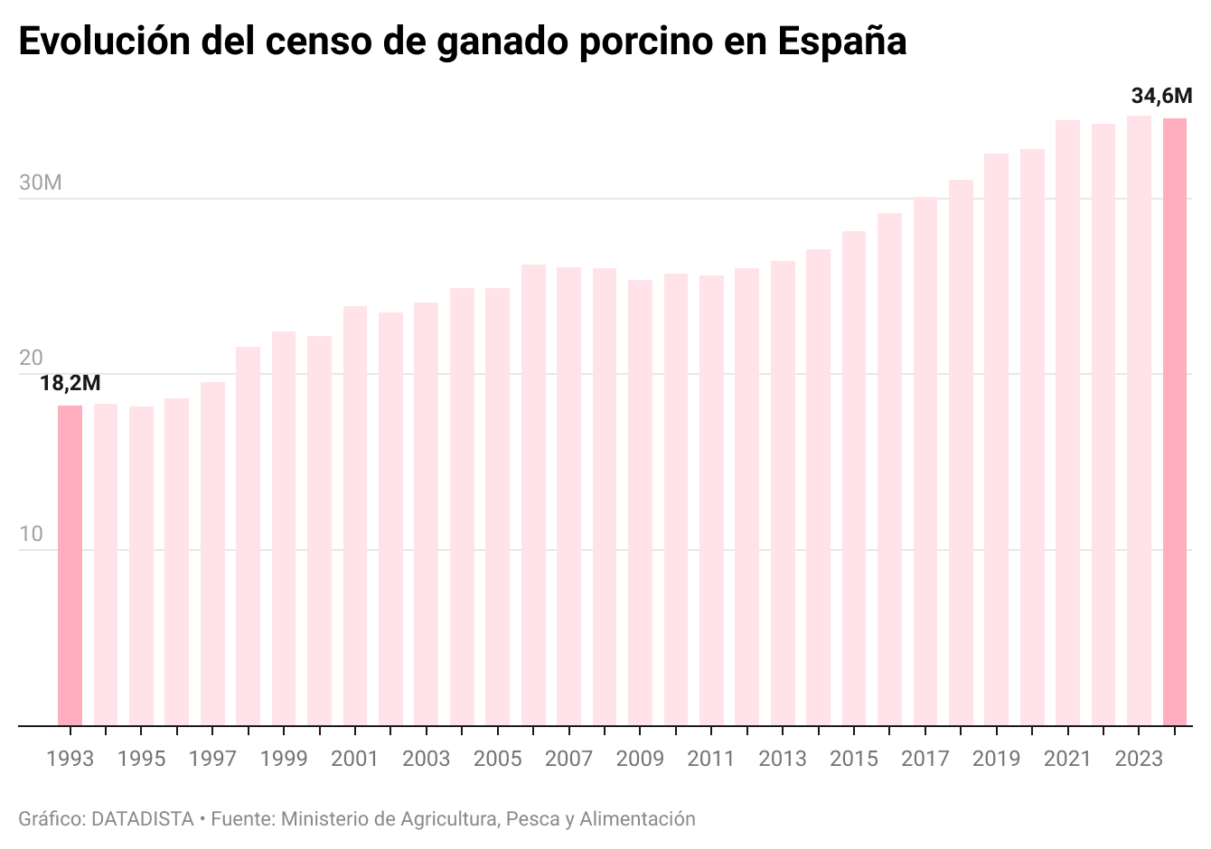 Hemos pasado de 18,2 millones de animales en 1993 a 34,5 millones en 2024.