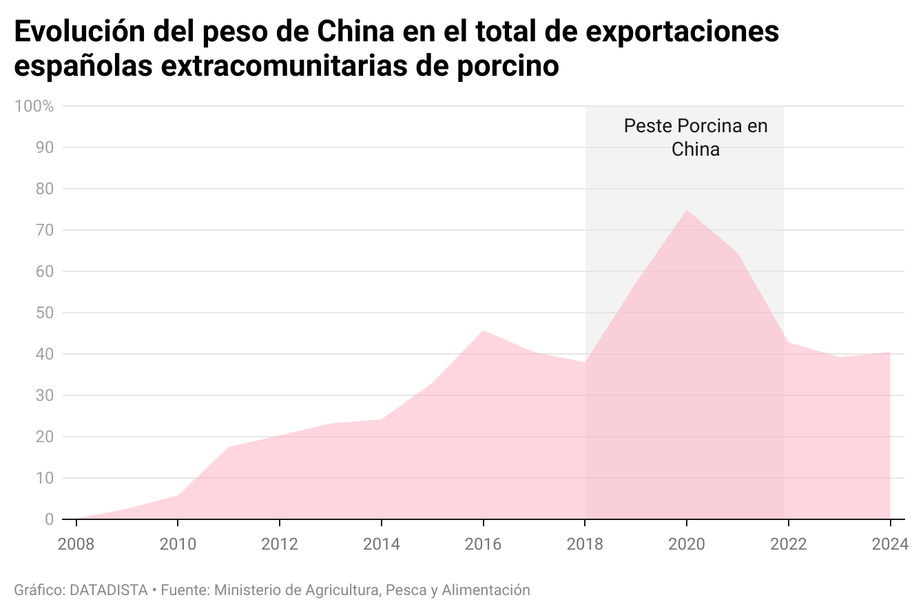 El Gobierno cerró con China, en abril de 2025, la ampliación de los productos autorizados para exportación y la eliminación de trabas sanitarias. Este acuerdo se logró en un contexto hostil, marcado por la investigación antidumping china contra el cerdo europeo y la imposición de aranceles provisionales de hasta el 62,4%, aún vigentes, con tipos que rondan el 20% para muchas empresas españolas.