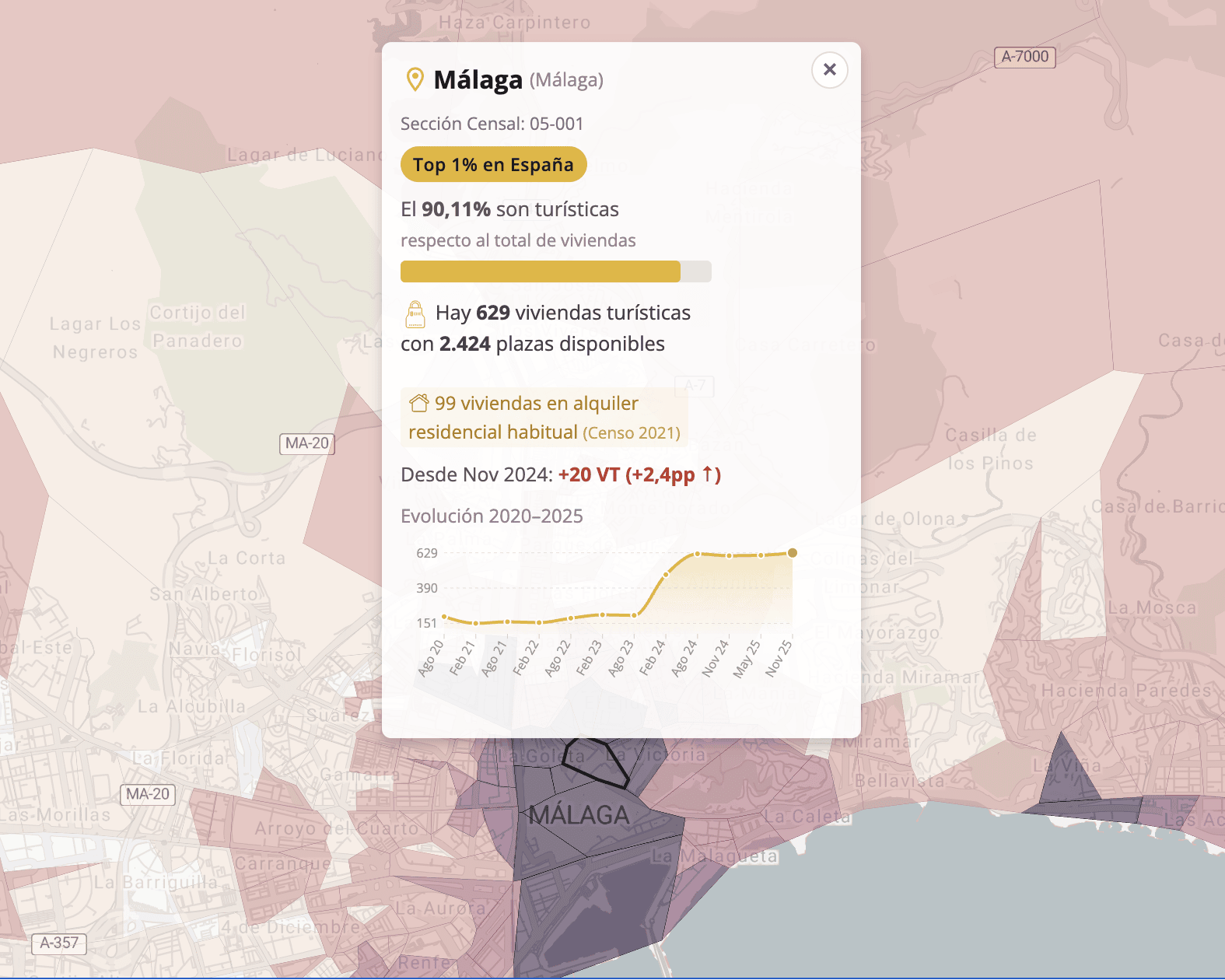 👉MAPA | La presión de los pisos turísticos en tu barrio, calle a calle