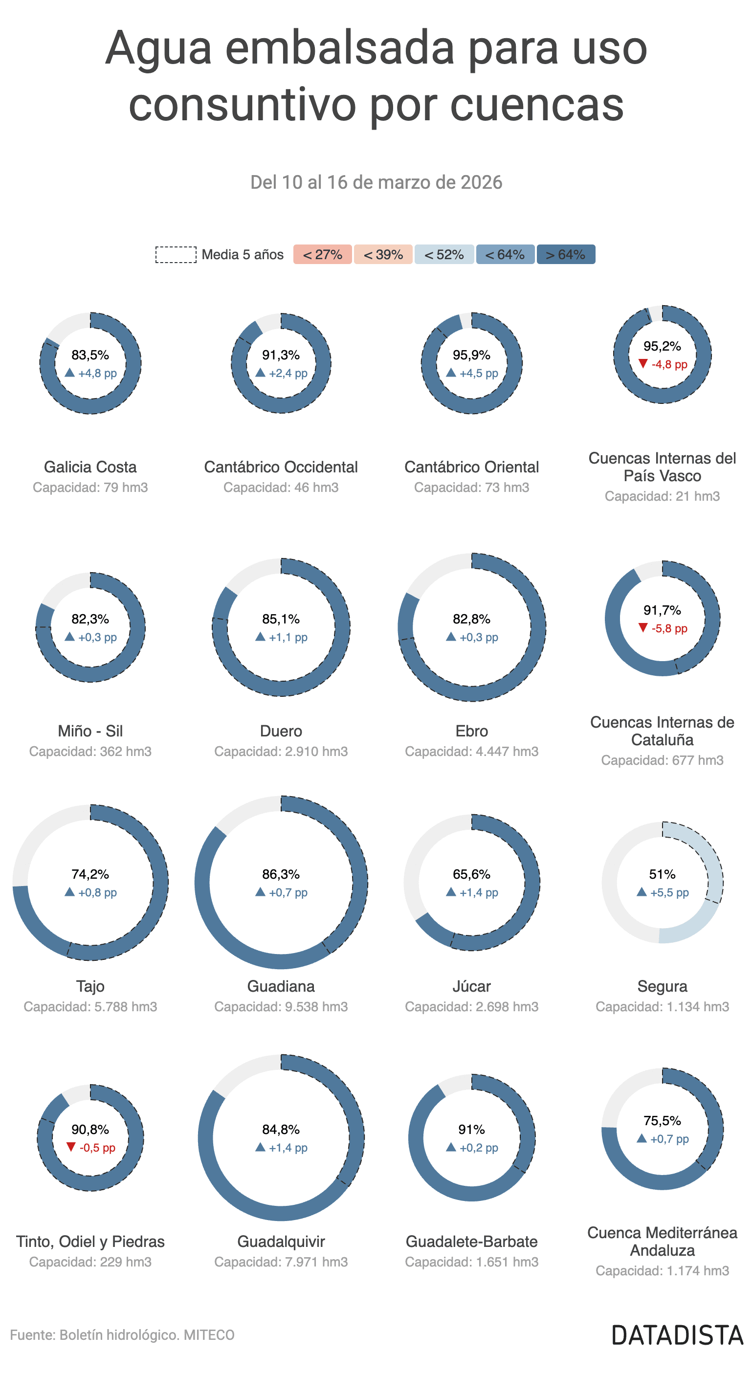 Aún más. En nuestra información sobre agua de hoy, comparamos los embalses de las cuencas que más sufrieron durante la última larga y dura sequía y el estado actual.