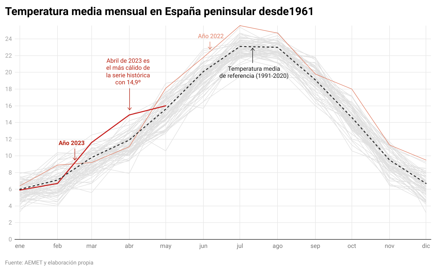 La primavera de 2023 fue la más cálida a pesar de que mayo fue un mes normal