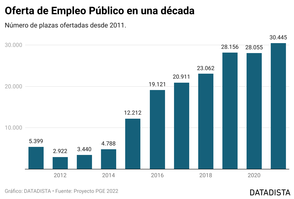 En 2022 se prevé la mayor oferta de empleo público en una década, según ha aprobado el Gobierno: 30.445 empleos.